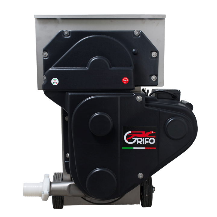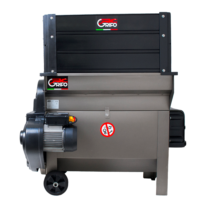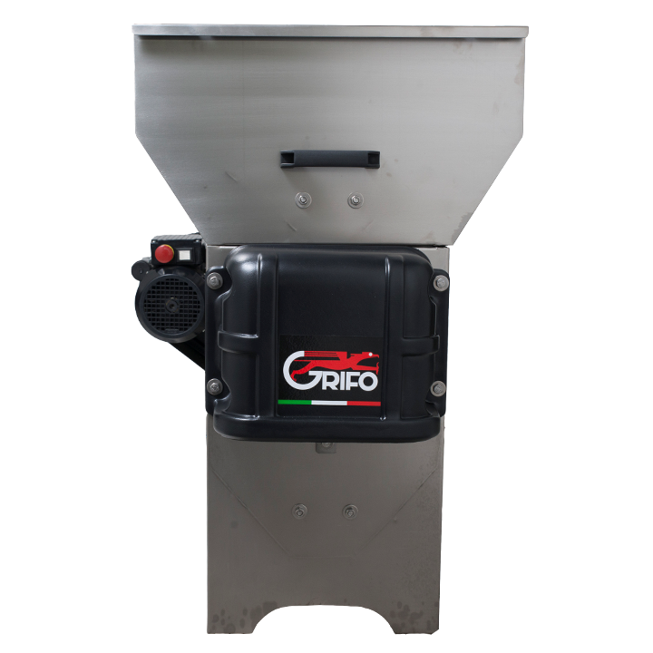 The large loading bucket allows for an easy loading operation. The destemming shaft and the stainless-steel grid separate the stems from the grapes. Equipped with a pump of great size and high quality to pump the must to the barrels and a powerful motor which sets all the inner mechanisms in motion: the destemming shaft and the two screw conveyors, one which brings the grapes toward the shaft and the other which moves the resulting must towards the pump.