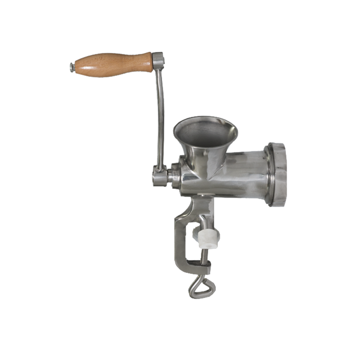The smallest meat mincer with crank, perfect to mince small quantities of meat. It’s designed to be fixed on a bench thanks to an easy and practical to use clamp. The body of the machine, the ferrule and the propeller are made of stainless-steel to guarantee high hygienic conditions and durability. Easy to clean. Imported product.